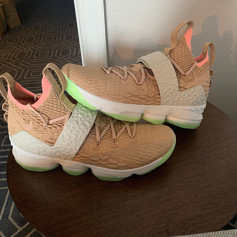 With his Lakers out of the playoffs, Bron Bron had to make something about himself again across social media a couple weeks ago. While coaching watching his son Bronny Jr., LeBron showed up in another PE Nike LeBron 15 in a “Breezy” color way that pays homage to the Nike/Kanye classic. The same colors, the same strap style, everything. A throwback to the Yeezy 1.