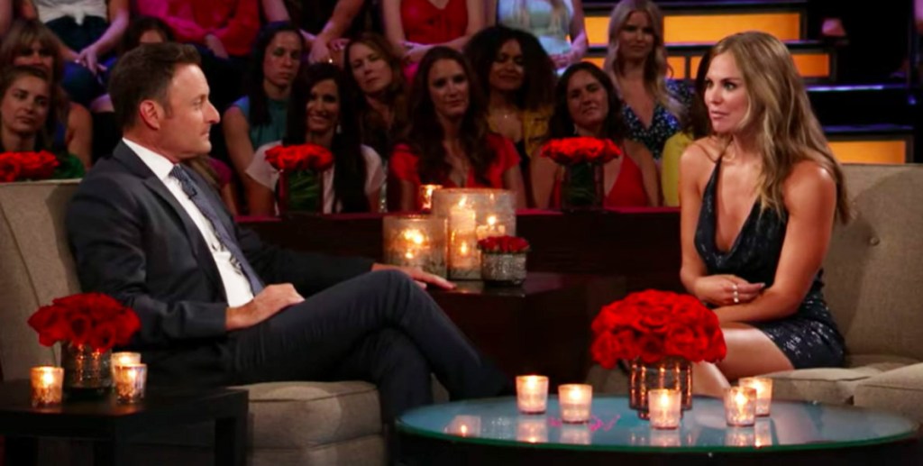 Finally, an hour and a half into this, Hannah takes a seat with Chris. Hannah admits to being very insecure about being the bachelorette. Interesting, and it actually kind of explains a lot.