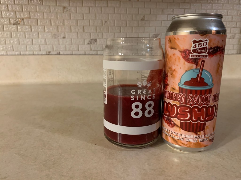 It’s been a few days since the last Brew Review, but I’m back with another one that’s like liquid dessert in a can, 450 North’s Cranberry Sauce Crumber Slushly XL. Here’s what I thought about this beer that takes a similar approach to a sour as Other Half’s Crunchee series.