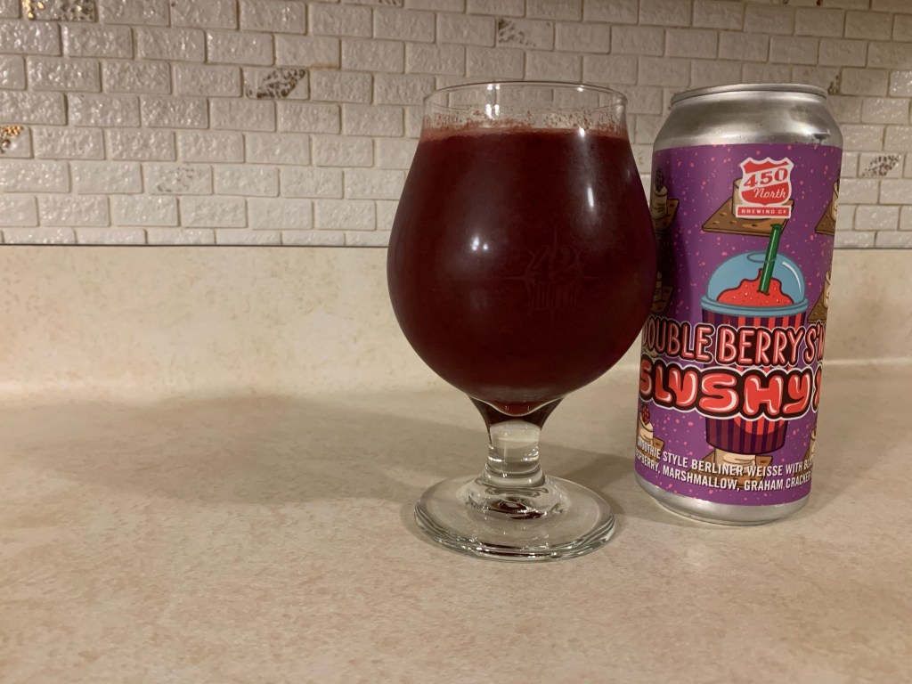 I’m back today drinking a fresh (eight days old) 450 North Slushy XL Double Berry S’mores. Check out what I thought of this sour: