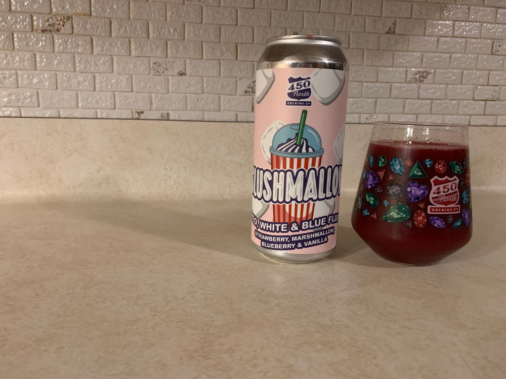 This should’ve been posted yesterday for the 4th of July, but I missed it by a day. Oh well. Tonight’s review is 450 North’s Slushmallow Red, White & Blue Fluff. A mix on their Slushy series that adds in marshmallow for a different type of flavor profile.
