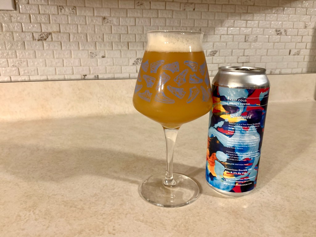 My favorite brewery, Tree House has been churning some new IPA variations the last few months with some new hops being used in them. For tonight’s Brew Review, I’m having Saturated, a new 8.3% American Double IPA.