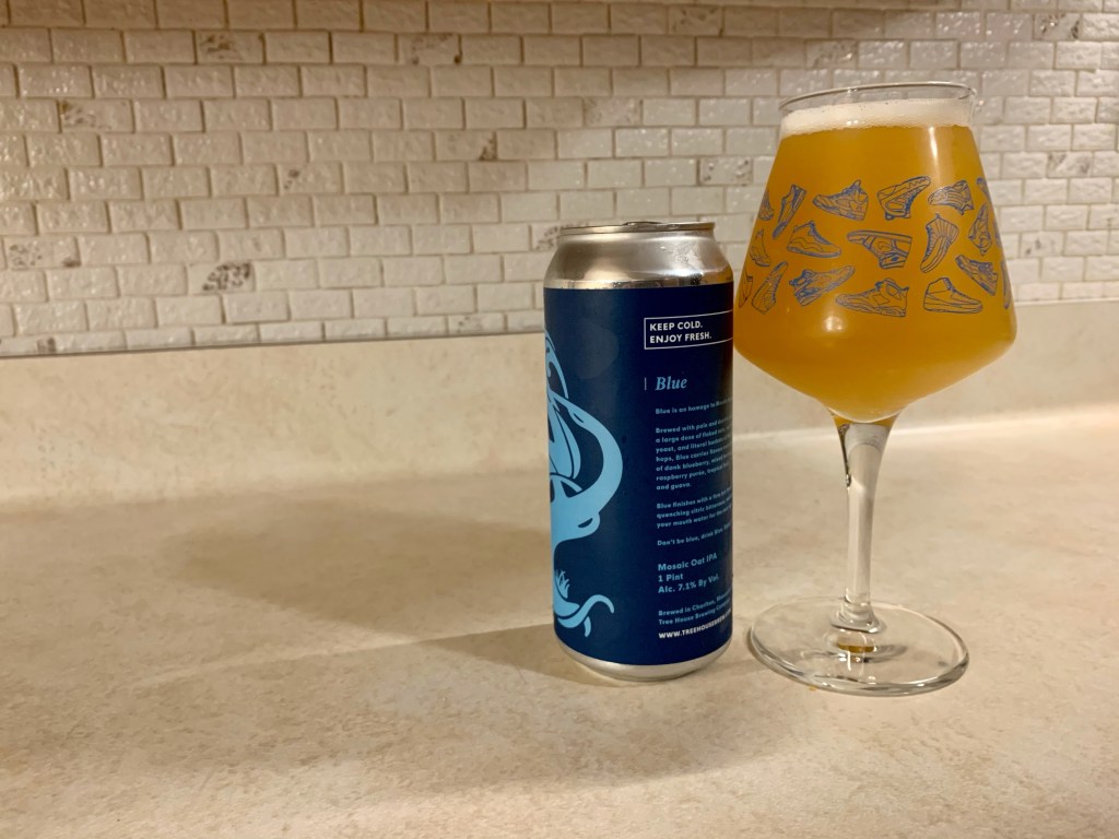 It’s been a little while since I’ve had a Tree House IPA, so I decided to give one of their newer ones, Blue a try for today’s Brew Review. Blue is a 7.1% mosaic oat IPA which is entirely centered around mosaic hops.