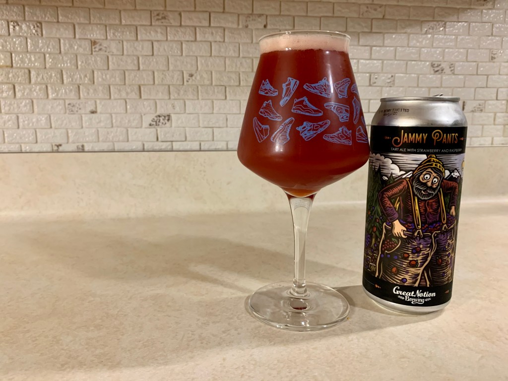 The beer I’m having for today’s Brew Review comes from the opposite side of the country all the way from Portland, Oregon. Jammy Pants from Great Notion Brewing & Barrel House is a 7% tart kettle sour ale made with “pantfulls” of strawberry and raspberry purée.