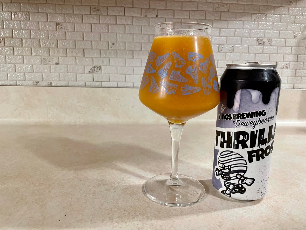 Tonight’s Brew Review is a wild collaboration between Kings Brewing and Dewey Beer of their Thrills and Fros’e lines of sours. I went into this one blindly and later read after my review that this crazy beer is flavored on peach, golden berry, vanilla bean, peanut butter, vanilla soft serve and watermelon. Totally didn’t get all that when I was drinking it.