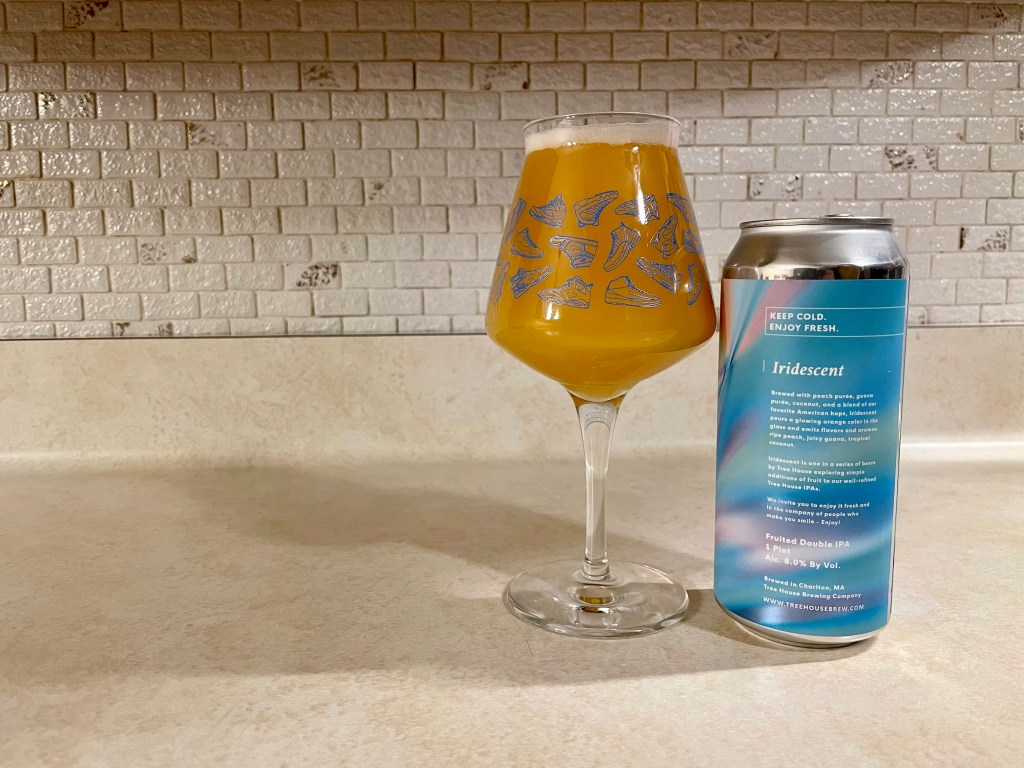 Tree House makes by far my favorite IPAs in the world. I love sour IPAs though that add fruit to IPAs so I was pretty hyped up to try my first fruited double IPA from Tree House for tonight’s Brew Review, Iridescent.