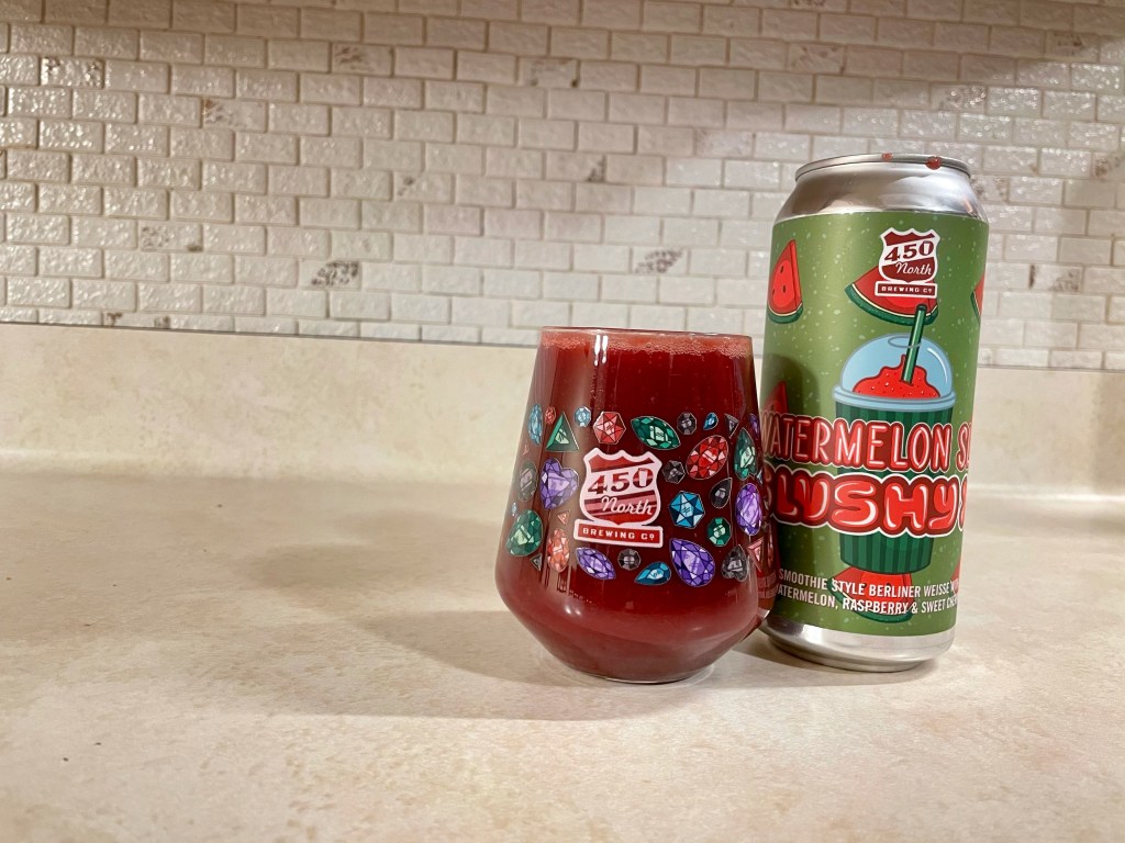 This flavor of 450 North’s Slushy XL that I’m having for tonight’s Brew Review, Watermelon Slice I’ve been looking forward to having for a while. I love watermelon flavors in beer and I expected Raspberry and Sweet Cherry.