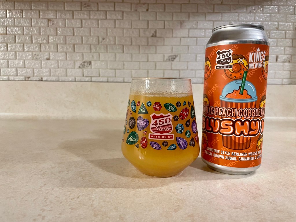 On tonight’s Brew Review, I’m having the first of a collab between 450 North and Kings Brewing, the Slushy XL Kronic Peach Cobbler Rings. This fruited berliner weisse flavored peach, brown sugar, cinnamon and lactose was brewed by 450. See what I thought of this one and stay tuned to see how the Kings version of the collab compares tomorrow!