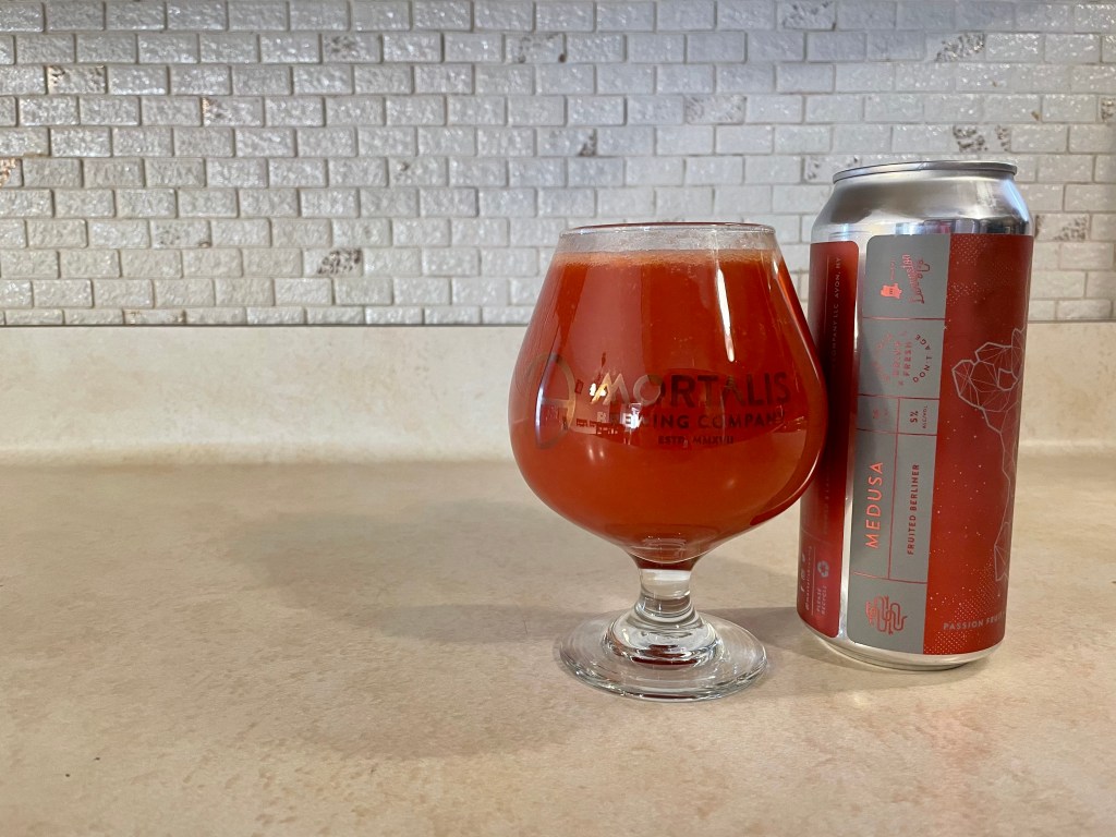 Today’s Brew Review is a lighter sour from Mortalis. The Medusa is a 5% fruited berliner and this one is flavored with tropical passion fruit and dragon fruit.
