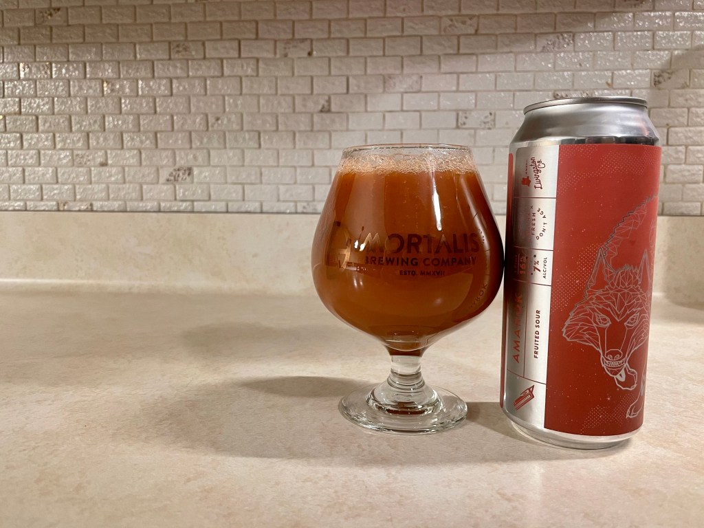 On today’s Brew Review, I’m having Amarok from Mortalis. For this 7% fruited sour, they blended the most different fruits together that I’ve ever seen in one beer with pineapple, strawberry, peach, orange, blackberry, prickly pear, tangerine and apricot.