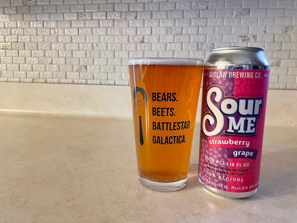 On today’s Brew Review, I’m trying a beer from another new Baltimore based brewery I hadn’t previously know about. Sour Me Strawberry Grape from DuClaw Brewing Co. is a 5.5% sour ale with strawberry puree, grape puree and lactose to replicate the flavor of Nerds candy.