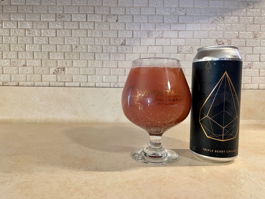 On today’s Brew Review, I’m having the Triple Berry Crumble variant of Mortalis’s Tears of the Goddess. This 7.5% abv sour IPA, features strawberry, blackberry, and raspberry puree and is conditioned on toasted coconut, Madagascar Vanilla, marshmallow, and granola with milk sugar, Citra, Mosaic, Amarillo, and Simcoe hops.