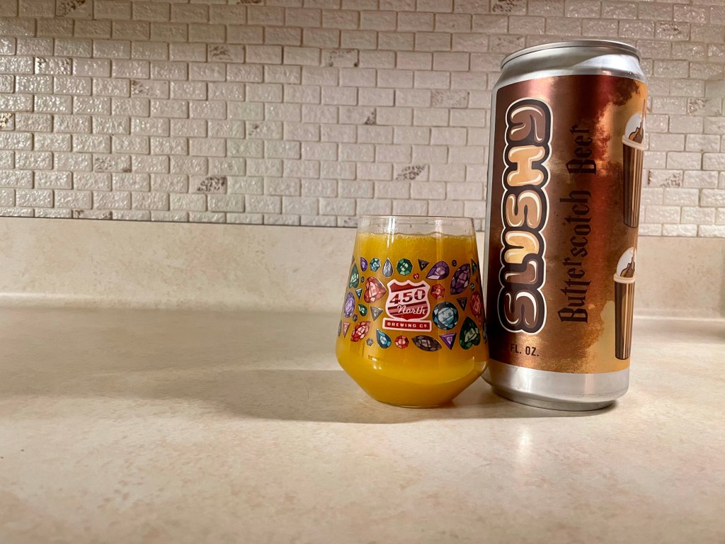 I haven’t had a beer from 450 North in quite a long time but when they released this Butterscotch Beer crowler based on “butterbeer” from Harry Potter, I had to try it. This sour on today’s Brew Review is conditioned on butterscotch, cream, vanilla, brown sugar and butter rum.