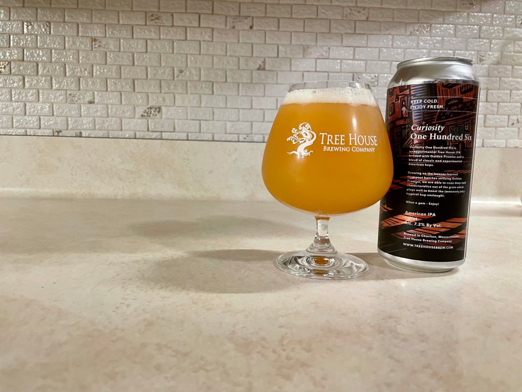 Curiosity One Hundred Six from Tree House Brewing Company is an experimental IPA brewed with Golden Promise malt and a blend of American hops. I’m trying this 7.2% ABV from the fantastic small batch series on today’s Brew Review.