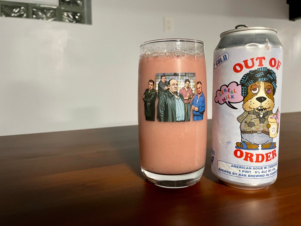 On today’s Brew Review, I’m having the Cereal Milk version of RAR’s Out of Order from their series based on the movie Friday. They teamed up with Powerzzzup and Cookies Enterprises and based this beer on one of their popular strains and took their lactose sour base, conditioned it on blueberry, strawberry and cake batter, blended it with terpenes (THC/CBD free) and finished it with their house pastry cream.