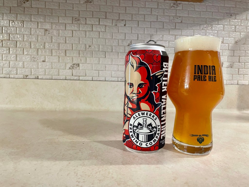 I’m trying Bitter Valentine from Alewerks Brewing Company in Williamsburg, VA on tonight’s Brew Review. This is an 8.3% double IPA loaded with Pacific Northwest hops blended with a light malt backbone.