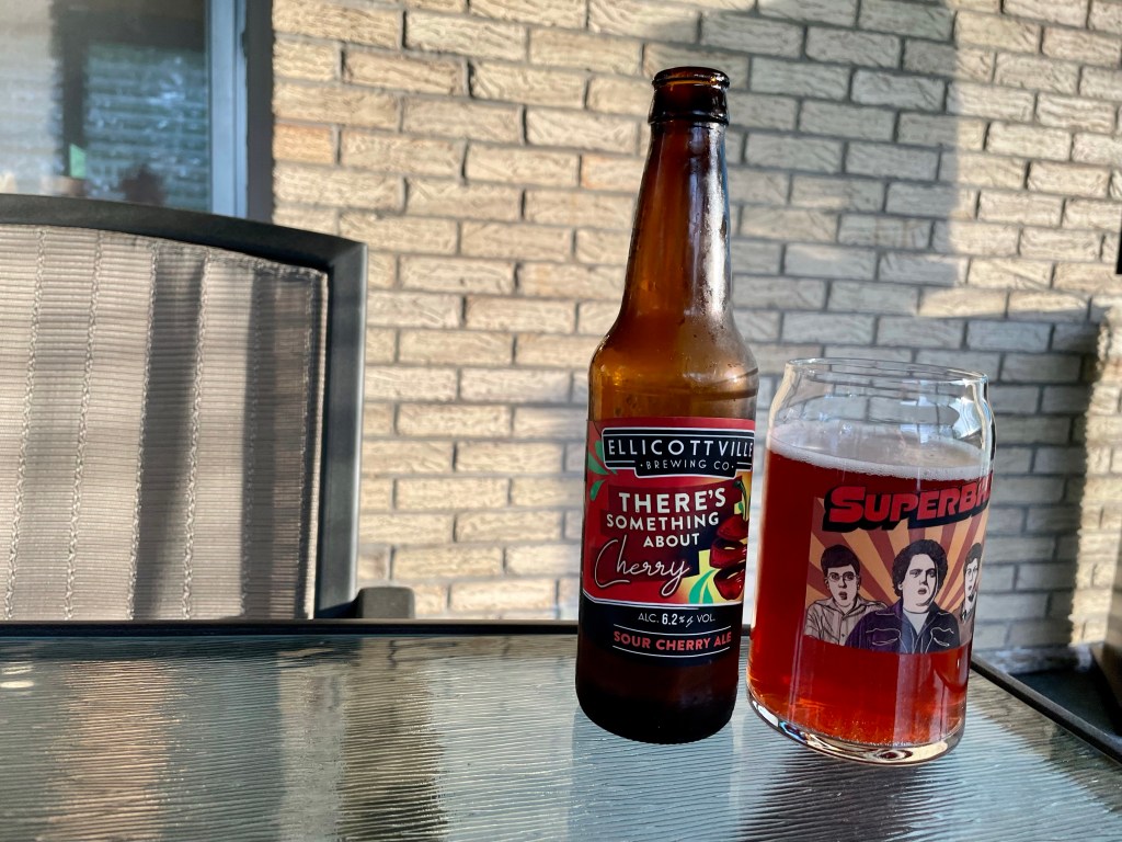 On tonight’s Brew Review, I’m having a somewhat local beer that one of my friends recommended to me, Ellicottville Brewing Co.’s There’s Something About Cherry (get the reference?). This is a 6.2% sour cherry ale.