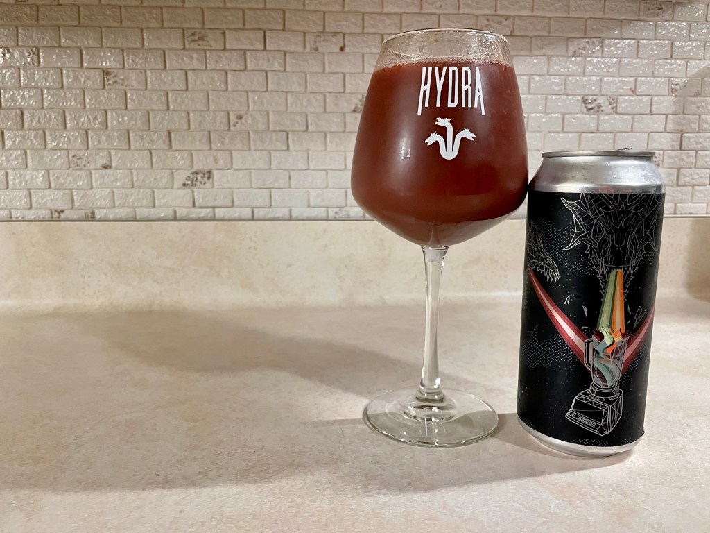 I’m having Hydra Blender Ender for tonight’s Brew Review. This collab between Mortalis and Widowmaker Brewing in Boston is based on a tequila sunrise by blending orange, sweet cherry, pomegranate, lime, and tequila soaked cherries into a 7% fruited sour.