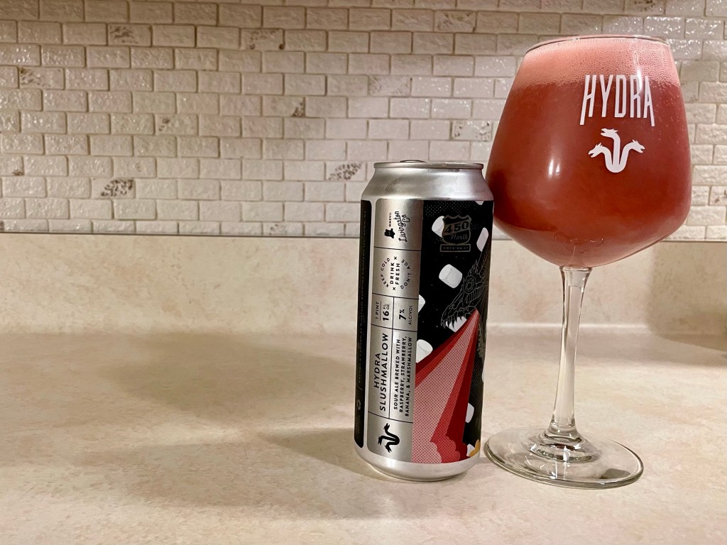 On Saturday I reviewed the first of Mortalis’s collab with 450 North and loved it. After a needed day off yesterday, I’m back tonight reviewing the other beer of that collab for tonight’s Brew Review, Hydra Slushmallow, brewed with raspberry, strawberry, banana and marshmallow.