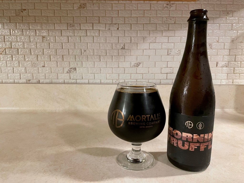 On tonight’s Brew Review, I’m having the Morning Truffle, a 10% ABV full bodied coffee stout that Mortalis brewed in collaboration with Beer Tree Brew Co. featuring coffee custom roasted for Beer Tree and conditioned on toasted coconut, Madagascar vanilla, locally roasted cacao nibs, and cheesecake.