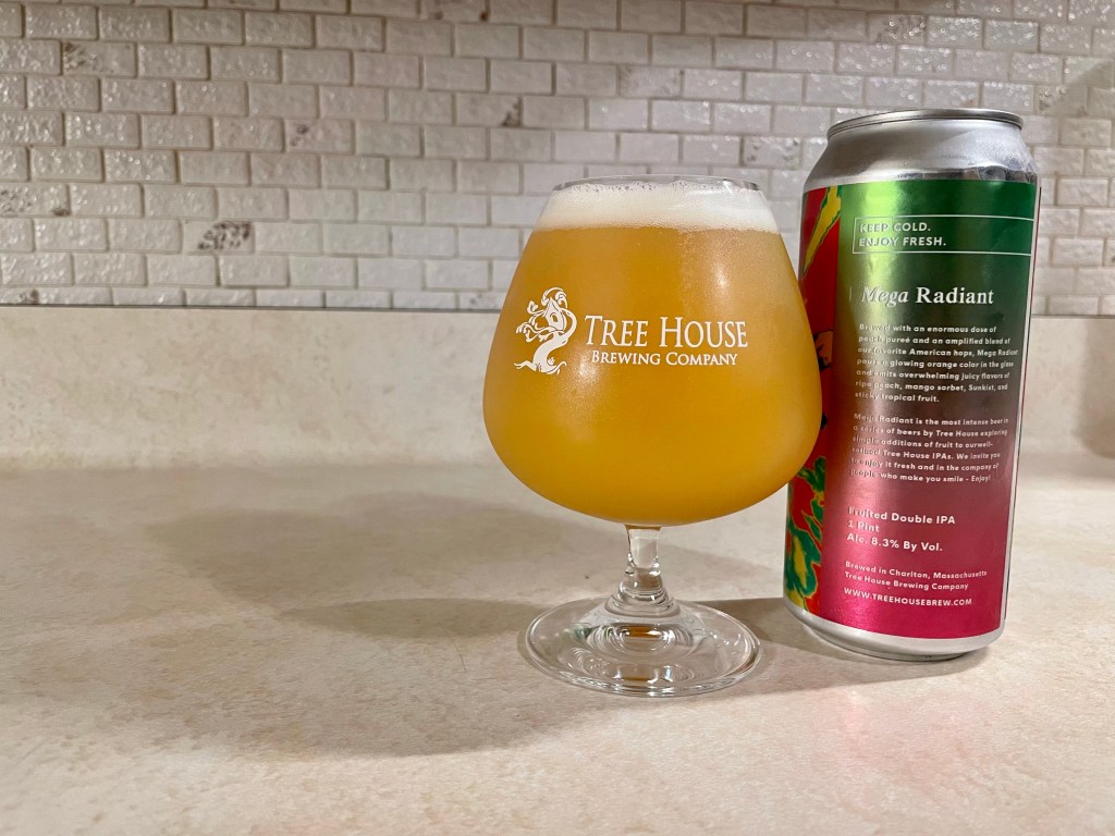 On today’s Brew Review, I’m having Mega Radiant from Tree House Brewing Company. This 8.3% fruited double IPA is brewed with an enormous amount of peach purée and an amplified blend of American hops.