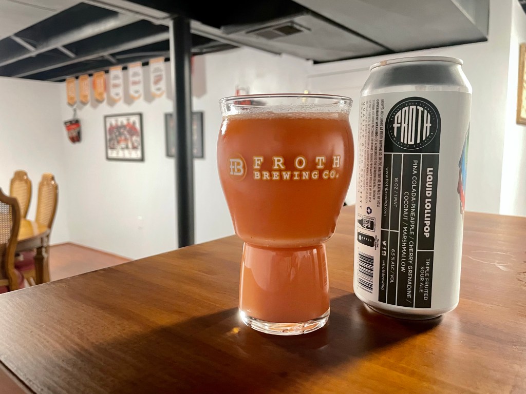 Tonight’s Brew Review is an interesting combo that Froth put together to replicate a pina colada. This Liquid Lollipop is flavored with pineapple, cherry grenadine, coconut and marshmallow.