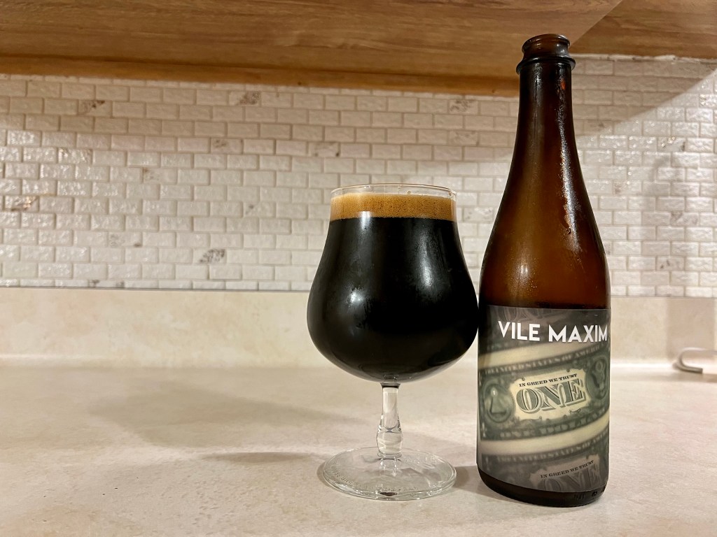 On today’s Brew Review, I’m having my first stout from the wildly popular Corporate Ladder Brewing in Florida. Vile Maxim is a 12% imperial stout with cacao nibs and toasted coconut.
