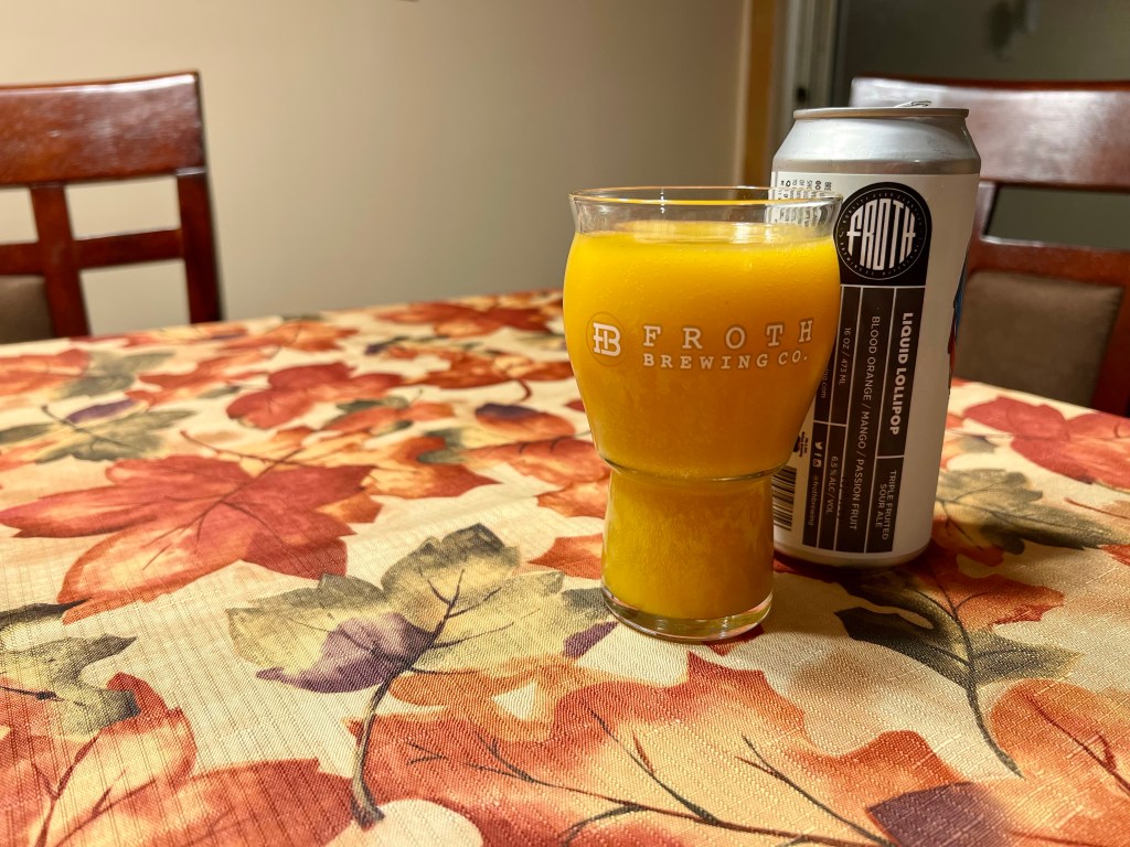 It’s been a few days, but I’m back with a Brew Review of one of the most recent Froth Liquid Lollipops. This tropical version of the 6.5% triple fruited sour is made with blood orange, mango and passion fruit.