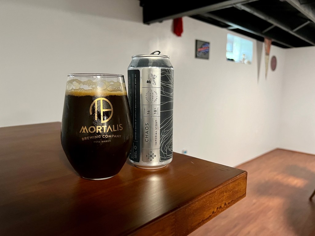 The weather is changing to stout szn and for today’s Brew Review, I’m sticking with that theme with Mortalis Chaos. This 10% imperial coffee stout is brewed with Mostra Mexican Muxbal coffee and locally roasted Dominican Cacao nibs.