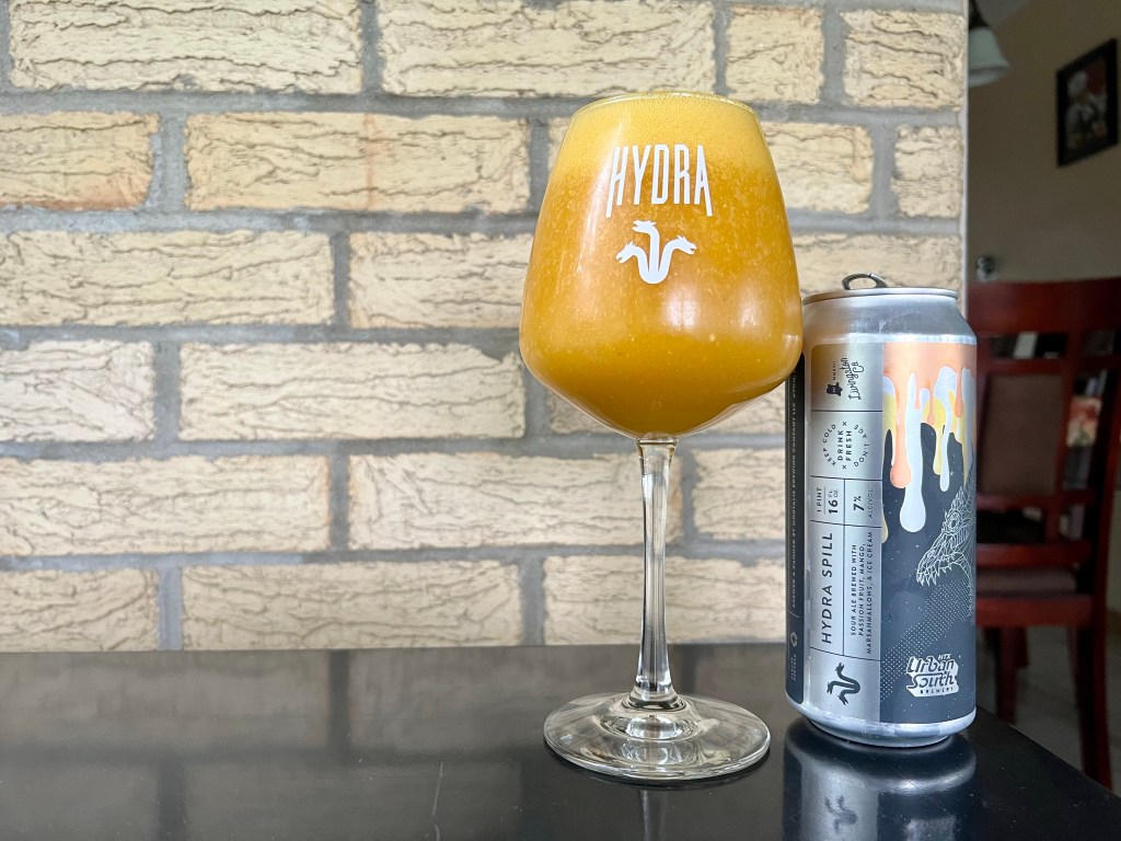 Having an anticipated collab on today’s Brew Review between two breweries that I’m a big fan of, Mortalis and Urban South. Hydra Spill is a 7% sour ale brewed with passion fruit, mango, marshmallows and ice cream.