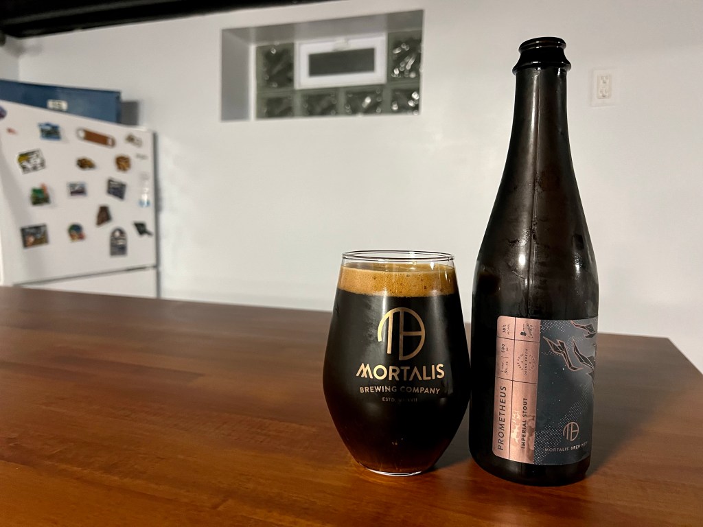 It’s stout season and on tonight’s Brew Review, I’m having Prometheus, released a few weeks ago from Mortalis. This 10% imperial stout showcases white macadamia nuts, Dominican cacao nibs, marcona almonds, dark grade maple syrup, and Mostra Coffee.