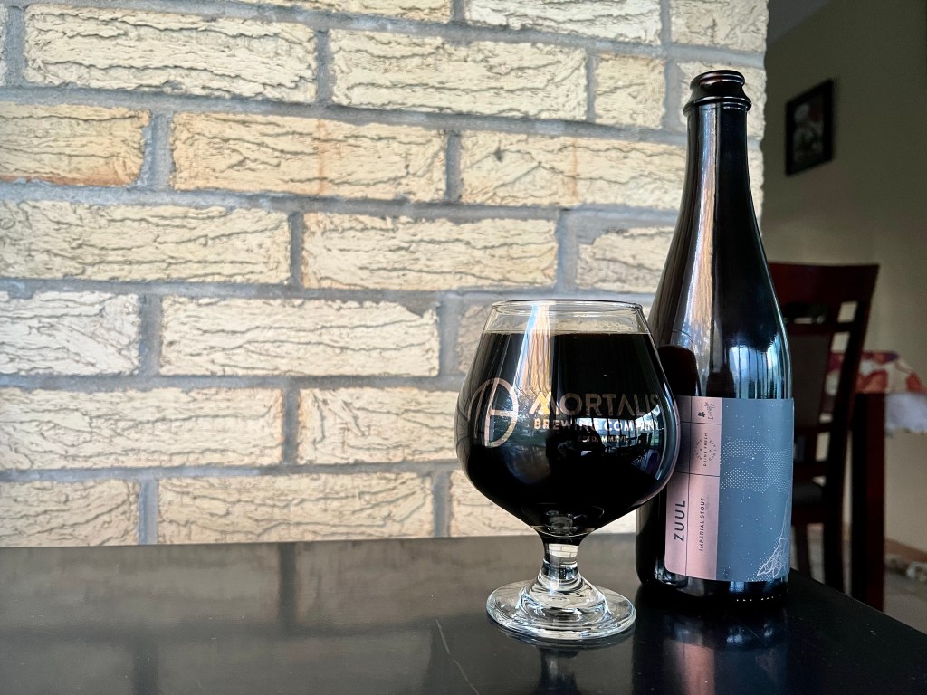 On tonight’s Brew Review, I’m having Zuul, a 10% imperial coffee stout released last weekend by Mortalis. This popular stout starts with a grain bill that focuses on highlighting Mostra Ghost Bear coffee and is conditioned on marshmallows.