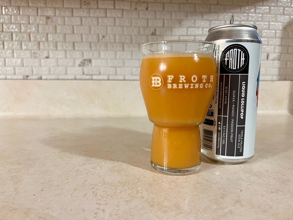 I’m having a bit of an older, tropical version of Froth’s Liquid Lollipops on tonight’s Brew Review. This 6.5% triple fruited sour is flavored on guava, mango and passion fruit.