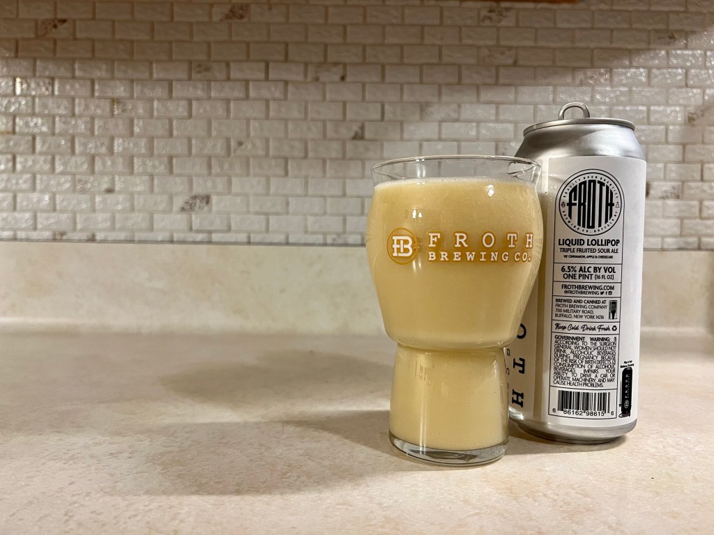 This Cinnamon, Apple and Cheesecake variant of Froth’s Liquid Lollipop that I’m having on today’s Brew Review was one of my most anticipated of this huge drop. This dessert sour ale is conditioned on cinnamon then blended with massive amounts of apple purée and their house made cheesecake filling for a result that kind of tastes like a creamy applesauce.