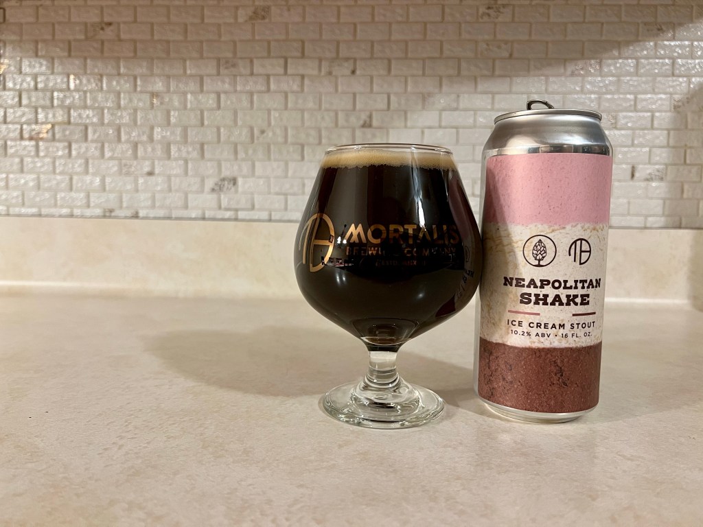 On today’s Brew Review, I’m having Neapolitan Shake that Beer Tree collaborated with Mortalis again on. I had this last year (before I started this show) and remembered it being phenomenal and wanted to revisit it with a review this year. This 10.2% ice cream stout is made with specially roasted Dominican cocoa nibs and chocolate malts, blended with Madagascar vanilla beans and creamy milk sugar and swirled with fresh strawberries and jam.