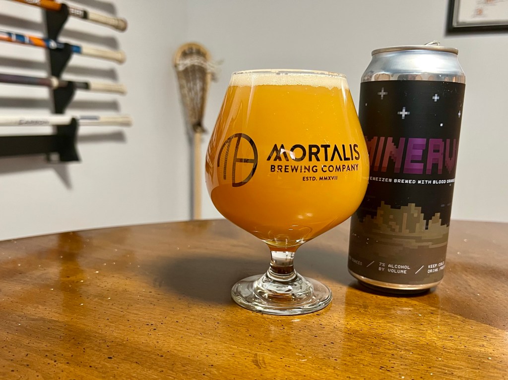 On tonight’s late Brew Review, I’m having Mortalis’s Minerva from their 8BIT line reimagining classic styles of beers. This is a unique 7% hefeweizen that’s unfiltered and conditioned on blood orange.