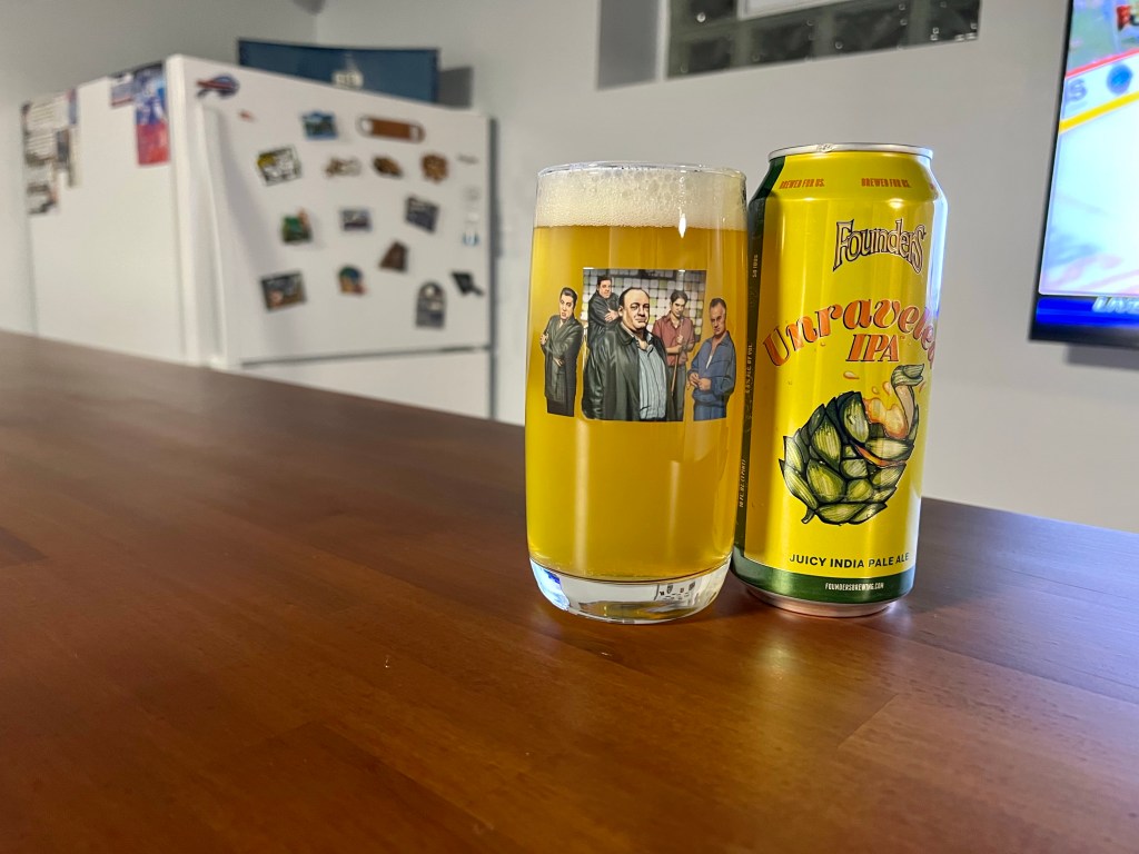 I’m having a more easy to get beer on today’s Brew Review, Founder’s Unraveled IPA. This 6.6% IPA is dry hopped with Amarillo, Azacca, Mosaic and Simcoe along with lupulin powder, an innovative hop product that separates lupulin from the hop flower.