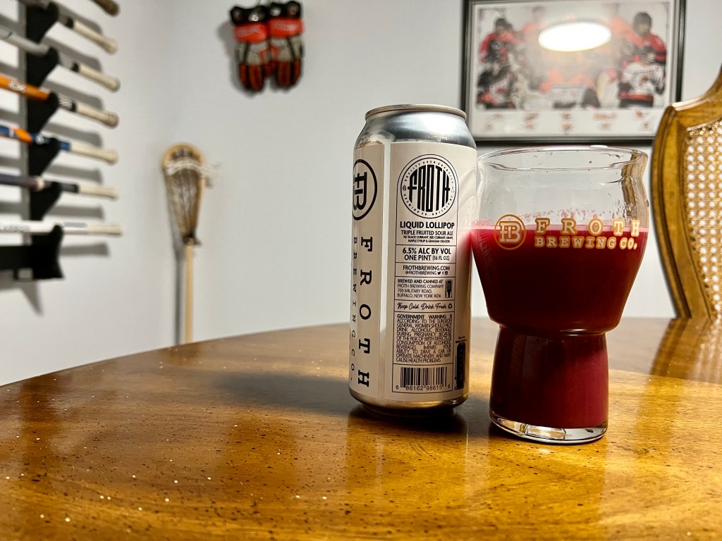 On tonight’s Brew Review I’m having a very wintery flavor of Froth’s Liquid Lollipop 6.5% triple fruited sours flavored on black currant, red currant, grape, maple syrup and graham cracker.