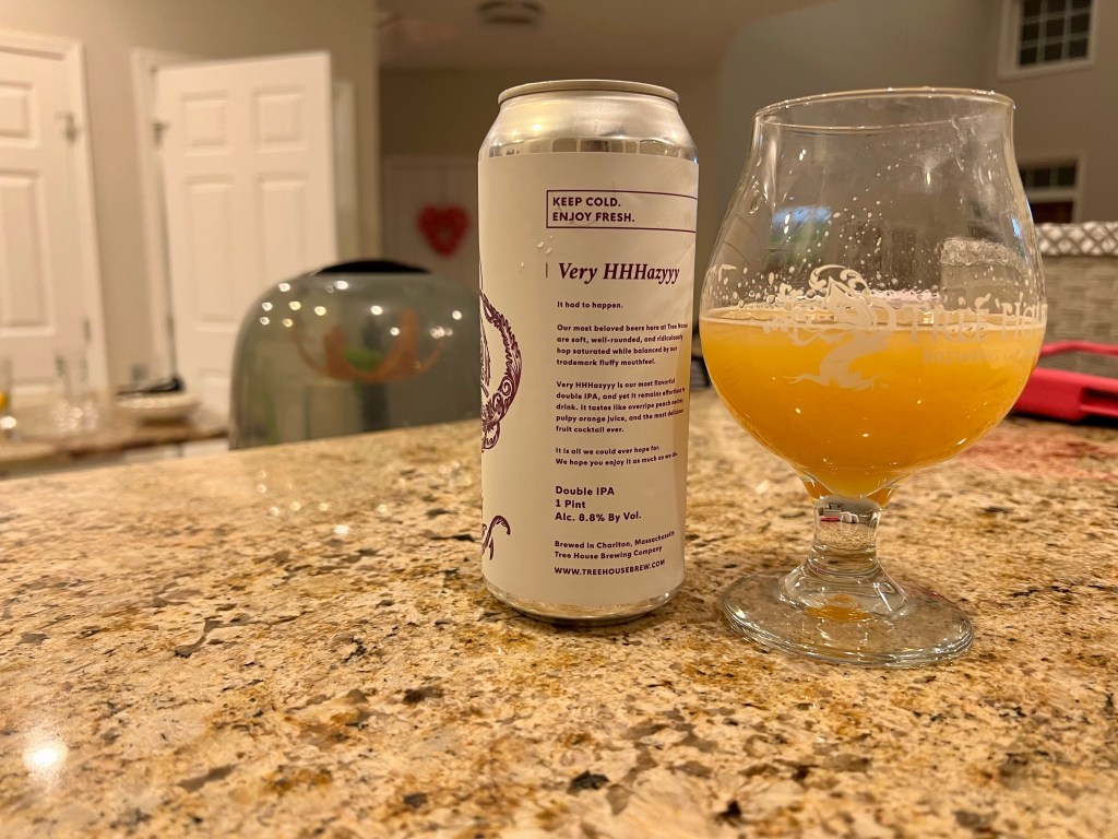 On today’s Brew Review, I’m having a Tree House IPA that I’ve anticipated for quite some time, Very HHHazyyy. This 8.8% double IPA is the latest in their Haze line which are all phenomenal, very flavorful beers.