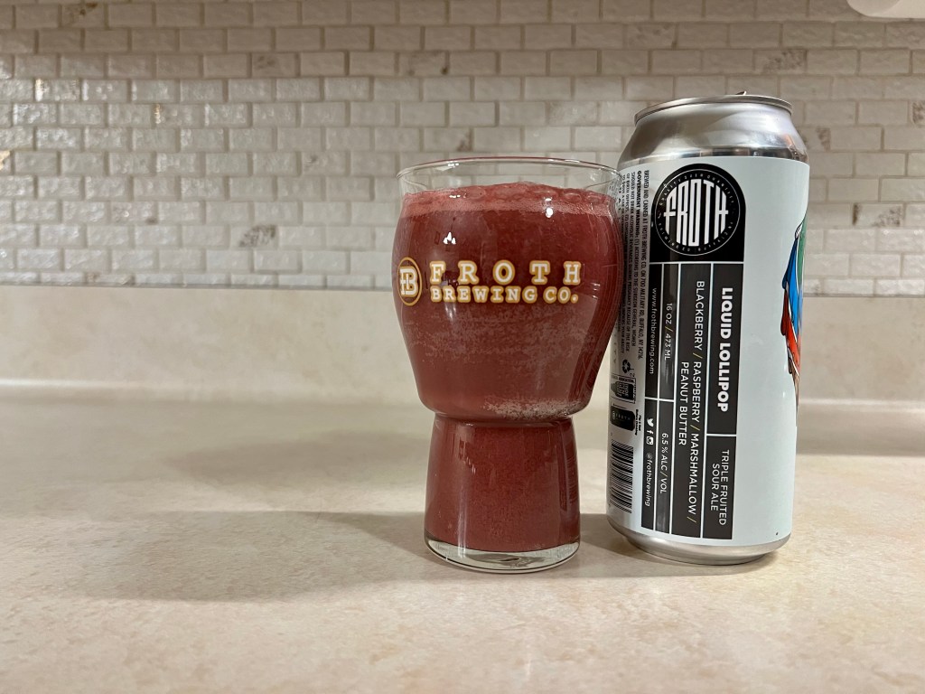 I’m having an older Liquid Lollipop that Froth released last May on today’s Brew Review. This 6.5% triple fruited sour is flavored on blackberry, raspberry, marshmallow and peanut butter.