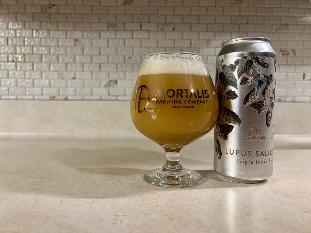Recently Mortalis has been improving on their IPAs and on today’s Brew Review, I’m having Lupus Salictarius. This 10% Triple IPA was brewed in collaboration with Equilibrium and both brewed it with a full body paired with Citra, Nelson and Galaxy hops.