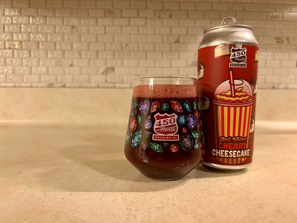 I wanted a nice dessert sour when I poured this Slushy XXL Red Velvet Cherry Cheesecake from 450 North on today’s Brew Review. This smoothie style sour ale is made with cherry, red velvet cake mix, cream cheese, graham cracker, brown sugar, vanilla and lactose.
