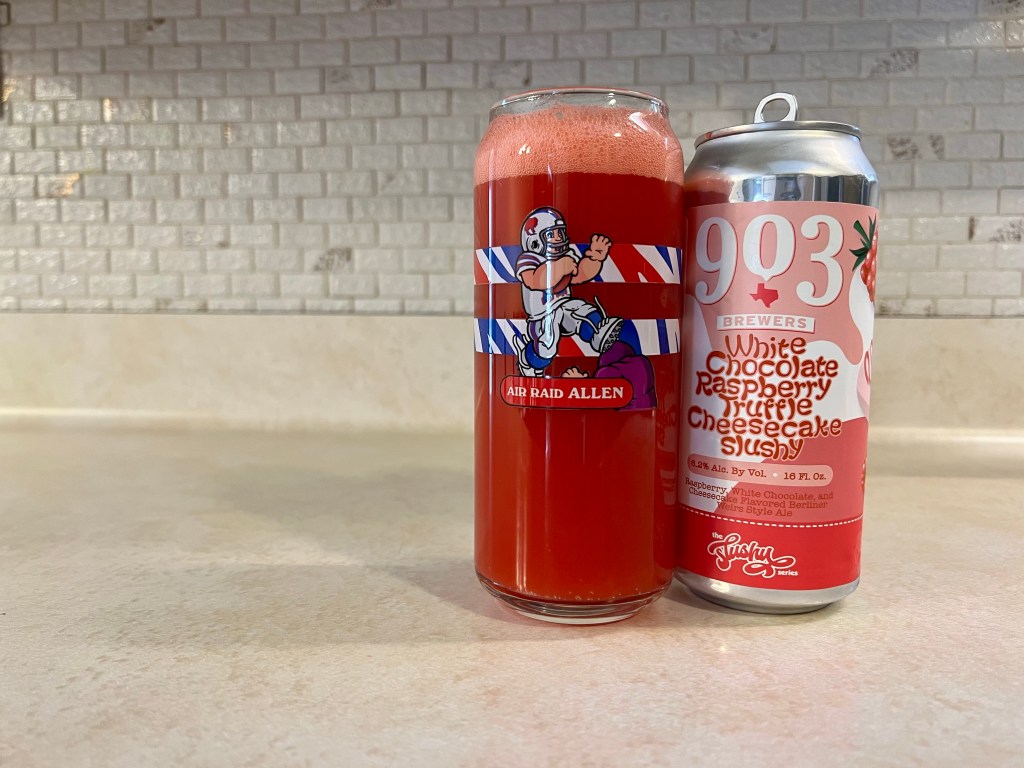 The beers I’ve had before from 903 Brewers in Texas have been great. On today’s Brew Review, I’m having the White Chocolate Raspberry Truffle Cheesecake version of their Slushy series, a 6.2% Berliner Wiers (not sure what the difference of that and a Weisse is) style ale.
