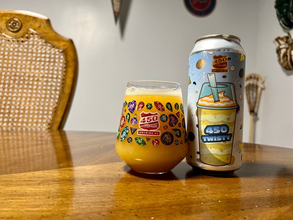 I expected this version, 450 Twisty of 450 North’s Slushy XXL that I’m having on today’s Brew Review to be awesome. This 5.3% smoothie-style fruited sour ale is flavored on pineapple, soft serve vanilla ice cream, marshmallow, vanilla cookie filling and cookie butter.
