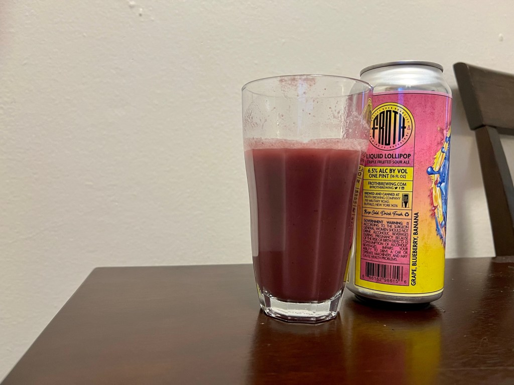 On tonight’s Brew Review, I’m having the latest from Froth on their recent Liquid Lollipop drop complete with rebranded can art. This version of the 6.5% triple fruited sour is conditioned on grape, blueberry and banana.