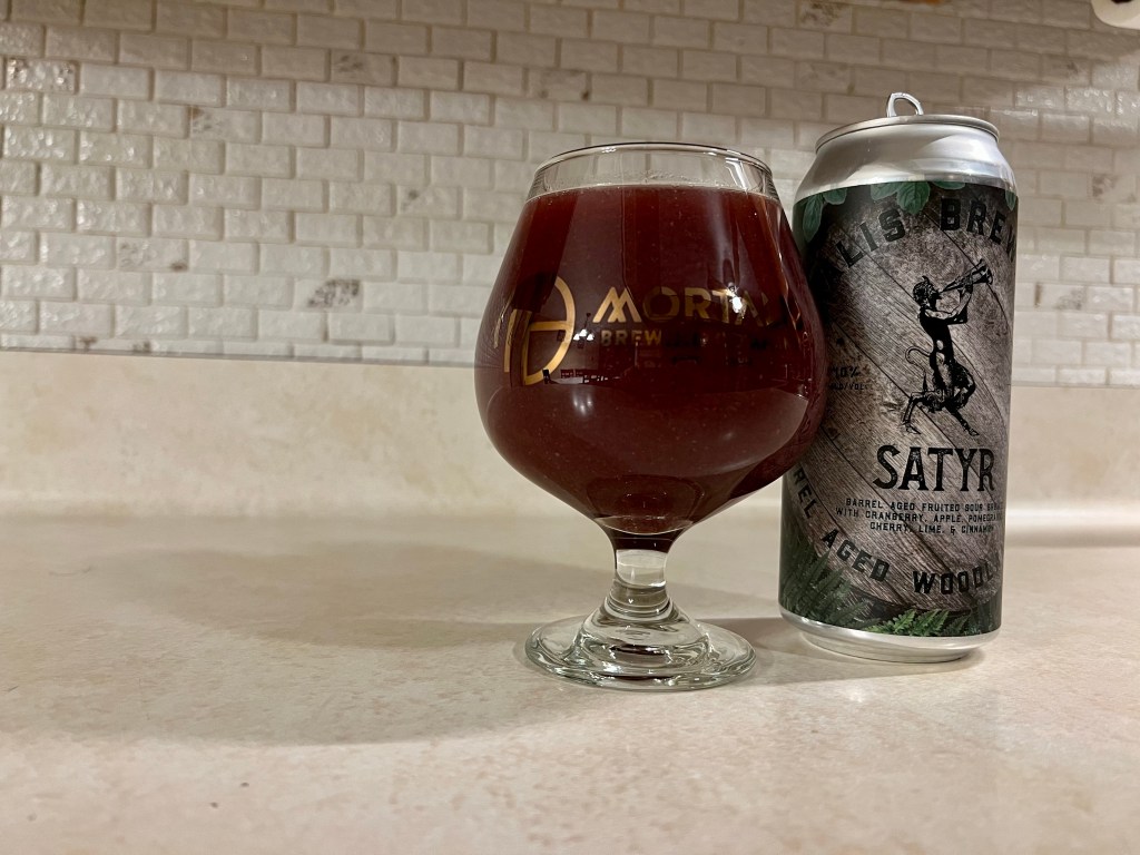 To mix it up on tonight’s Brew Review, I’m having Satyr from Mortalis. This 10% fruited sour is quite different from most I’ve had. They took their Hydra base and aged it on Apple Brandy and Cherry Brandy barrels and then conditioned it on apple, pomegranate, cherry, cranberry, lime and cinnamon after it was aged.