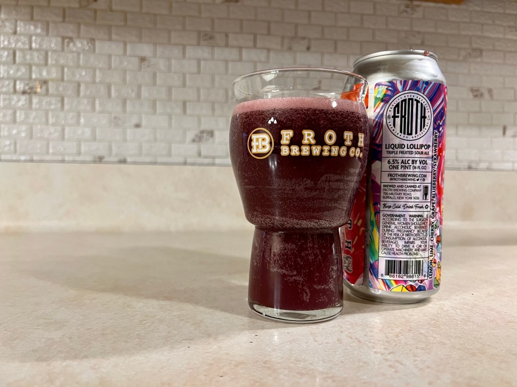On tonight’s Brew Review, I’m having Liquid Lollipop Abomination from Froth. This 6.5% triple fruited sour is a collab with Abomination Brewing based on the everlasting gobstopper from Willy Wonka, flavored with lemon, lime, cherry, grape, blueberry and strawberry.