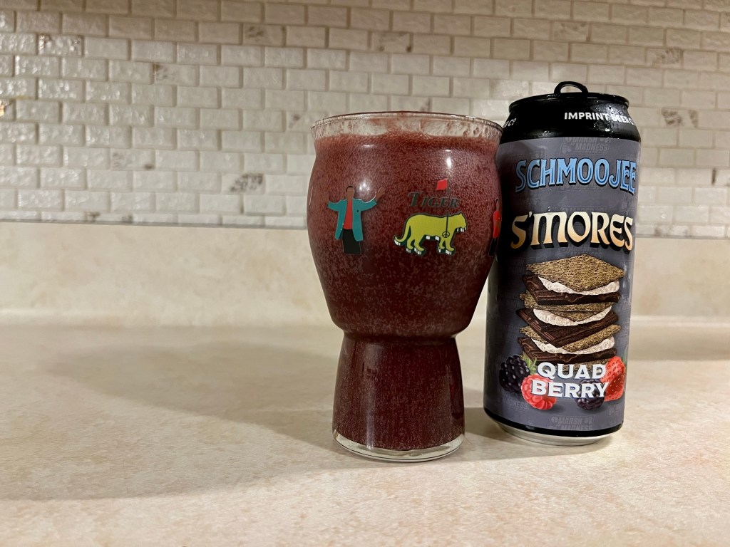 Love that I can get Imprint’s beers locally now and on today’s Brew Review I’m having their Schmoojee S’mores Quad Berry, one of four beers in their Marshmallow Madness Core Pack. This fruited sour is made with raspberry, strawberry, blackberry, boysenberry, toasted marshmallow, dark and milk chocolate and marshmallows.