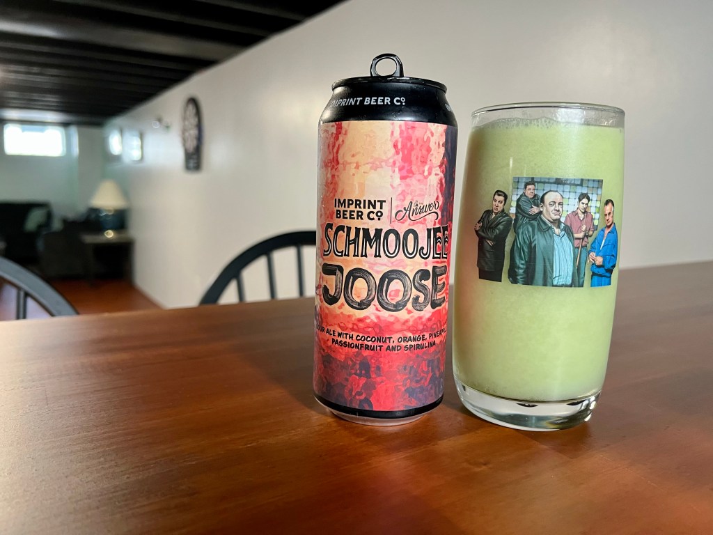 On today’s Brew Review, I’m having Schmoojee Joose, a collab that Imprint Brew Co. teamed up with The Answer on. This crazy looking sour ale was made with coconut, orange, pineapple, passionfruit and spirulina (which I had to google to find out what it was).
