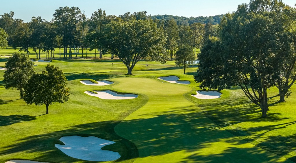 Par 71, 7534 yards, Robert Trent Jones design, should play shorter than the actual yardage of the course with two of the Par 5s playing over 600 yards and three of the Par 3s are over 200 yards, 8 of the Par 4s range from 390-450 yards, tree lined narrow fairways with the tree line 10-20 yards from the edge of the fairway, 4 inch thick blue grass rough which is much easier to control spin and distance out of compared to bermuda so it shouldn’t be too penal, 91 bunkers, water in play on four holes, huge bentgrass greens that are fast and undulating, guarded by a ton of green side bunkers with run off areas on a few holes